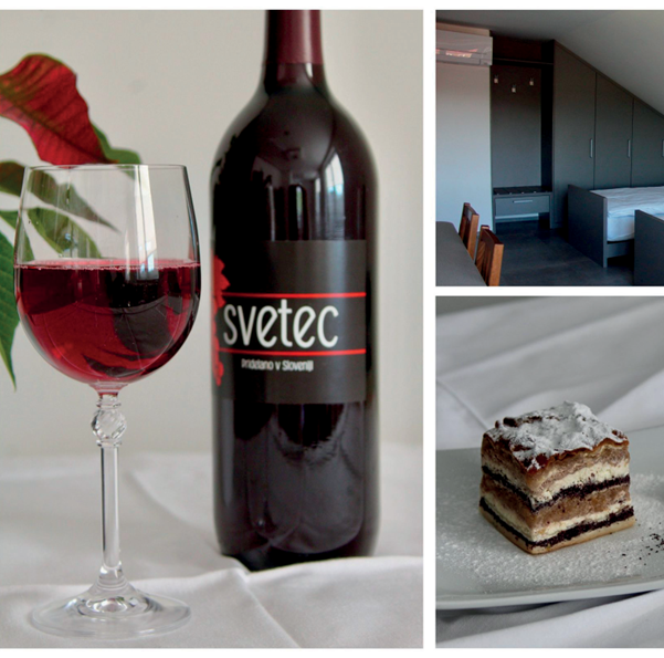 • Nočitev z zajtrkom ter steklenica hišnega vina. Za 2 osebi.
