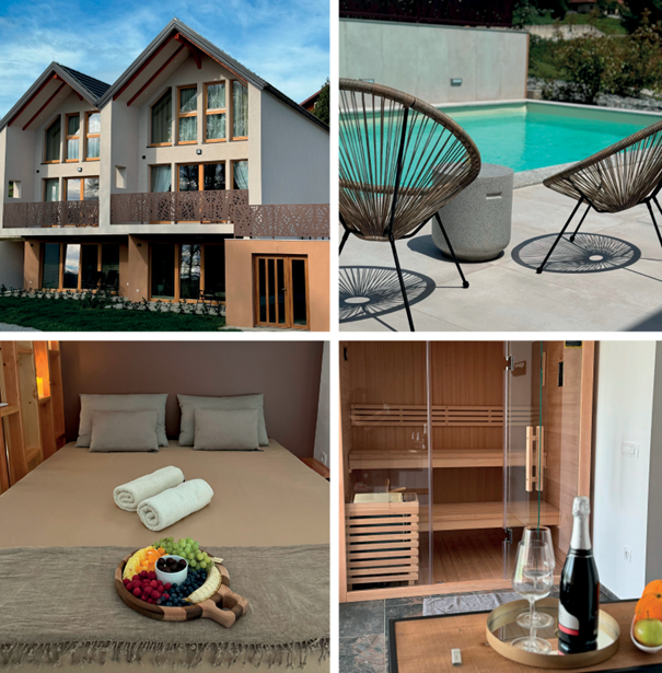 Nahajamo se na obrobju Slovenije v naselju Hrastovec, ki meji na sosednjo Hrvaško. Na voljo za razvajanje imamo dva prekrasna apartmaja, ki nudita vse za popoln oddih v dvoje. Apartma ponuja spalnico, kopalnico, dnevni prostor, kuhinjo z jedilnico, balkon, wc, v kletnih prostorih je wellness prostor s savno, masažnim bazenom, kopalnico in teraso. V poletnih mesecih je odprt zunanji bazen. Okolica ponuja nešteto haloških peš poti in poti za kolesarjenje. Bližina hrvaške meje je idealna tudi za ogled sosednje države.
