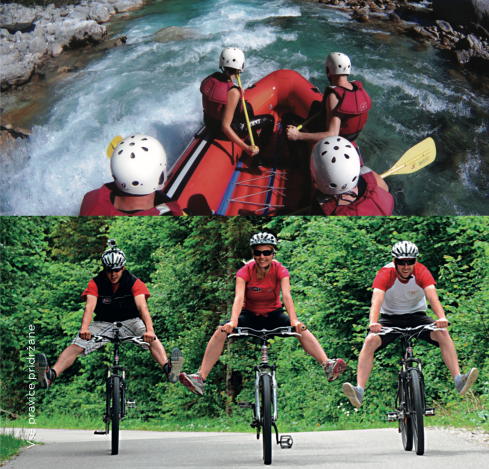 - Rafting na reki Soči (1 ura 45 minut na vodi; skupaj 2,5 uri), enodnevna izposoja kolesa in prenočevanje v zasebni sobi X Point hostla Kobarid.