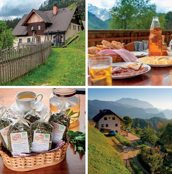 Tradicija turistične kmetija Perk, ki leži na 1230 metrih nadmorske višine, seže daleč nazaj. Kmetovanje, gozdarjenje in turizem so njihov poklic, vaše dobro počutje pa je njihovo poslanstvo. Njihovi prostori so opremljeni v preprostem podeželskem slogu z doma izdelanim pohištvom iz lesa gorskega macesna in smrek, ki rastejo na 1500 metrih nadmorske višine. Turistična kmetija Perk leži na Solčavski panoramski cesti, ki se vije med najlepšimi gorskimi razgledi v Sloveniji. Naužijte se narave, poprimite za kmečka opravila in se z razgledom na planine okrepčajte z domačimi dobrotami. Kolesarite med pašniki in gozdovi, sprehodite se do Potočke Zijavke in si oglejte muzej ledenodobnega človeka, spotoma pa okušajte domače suhomesnate dobrote in se osvežite z izvirsko vodo.